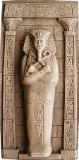 character on a wood base. With electric glowing realiztic red